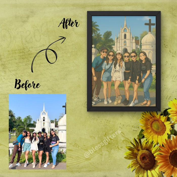 Ghibli-Style Squad Frame – Ultimate Friendship Wall Art